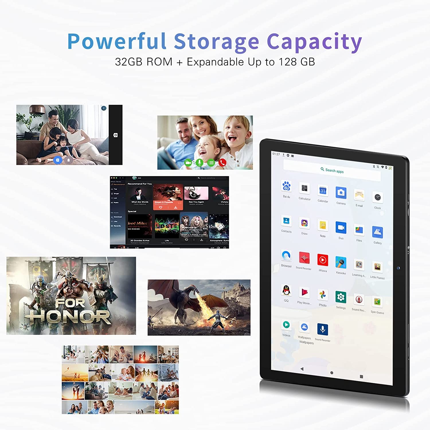 【Large-capacity Storage Tablet】The qunyiCO tablet has 2GB RAM, 32GB internal storage + expandable storage up to 128 GB. Performance has been greatly improved to ensure comfortable operation. You can enjoy movies, Kindle, manga, music, photos, etc. on your tablet. Large storage space can meet your daily work and study needs. Note: Although External storage can be expanded up to 128GB. For best operation experiences we still recommend 32GB. 128GB may makes the system slowly.