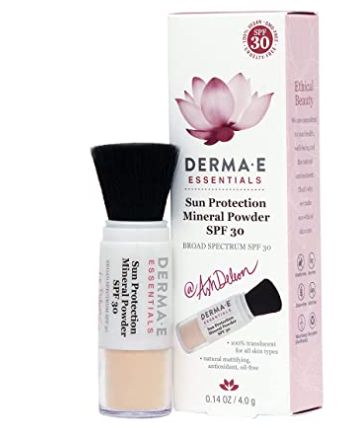The new DERMA E Sunscreen Mineral Powder SPF 30 (with Makeup Guru and Instagram Influencer Ash Deleon!). This translucent, non-nano mineral powder can be used alone or over makeup for a natural, flawless look. Reapply every 2 hours for sun protection throughout the day.
