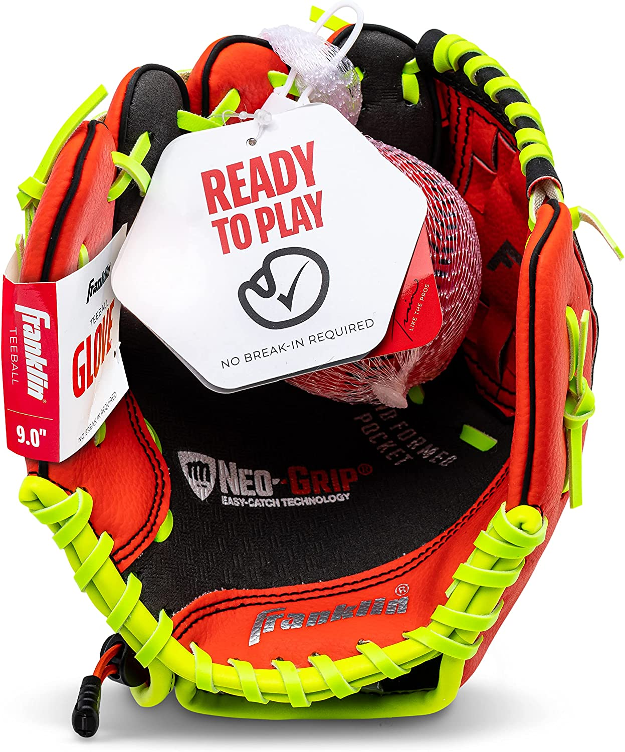 Franklin Sports Teeball Glove - Left and Right Handed Youth Fielding Glove - Neo-Grip - Synthetic Leather Baseball Glove - 9.0 Inch - Ready To Play Glove with Ball