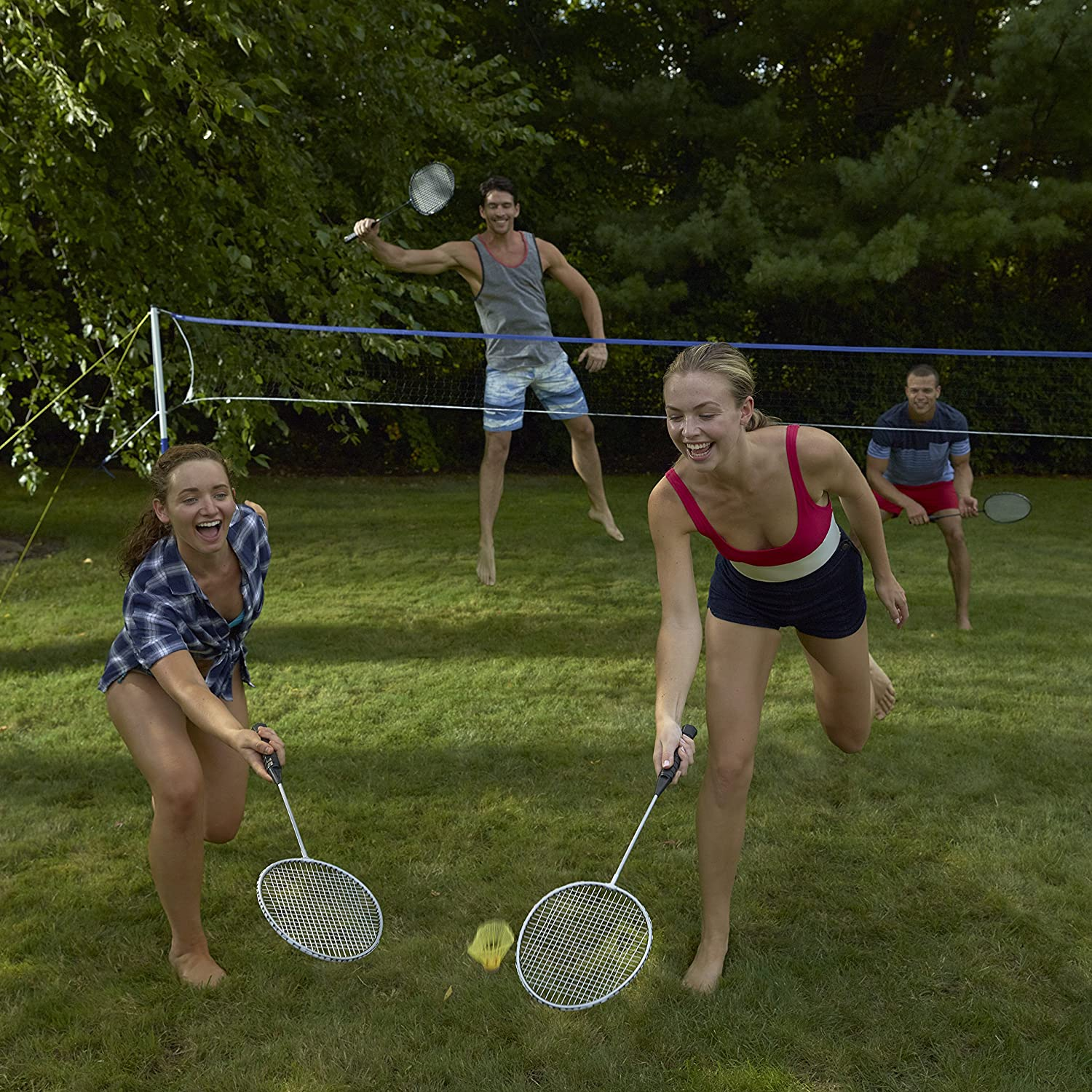 INCLUDES 4 steel badminton raquets and 2 shuttlecocks are included