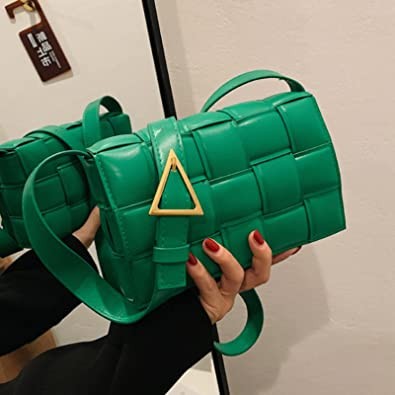 Ling Chuang Woven Crossbody Handbag Purse for Women, Leather Small Handbags Clutch Square Bag Weave Shoulder Bags