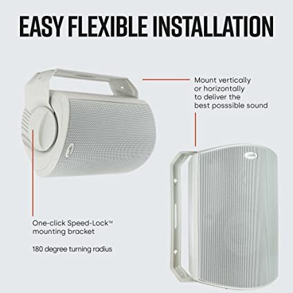 Outdoor Weatherproof Speaker with Bass Reflex Enclosure (Pair, White) | Expansive Sound Coverage | Speed Lock Mounting System