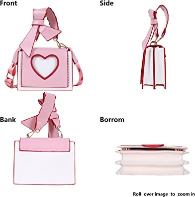 Design: This bow bag has an adjustable and detachable shoulder strap and can be used as a shoulder bag/purse/crossbody bag. There is a heart pattern in the middle. Very cute and shiny!